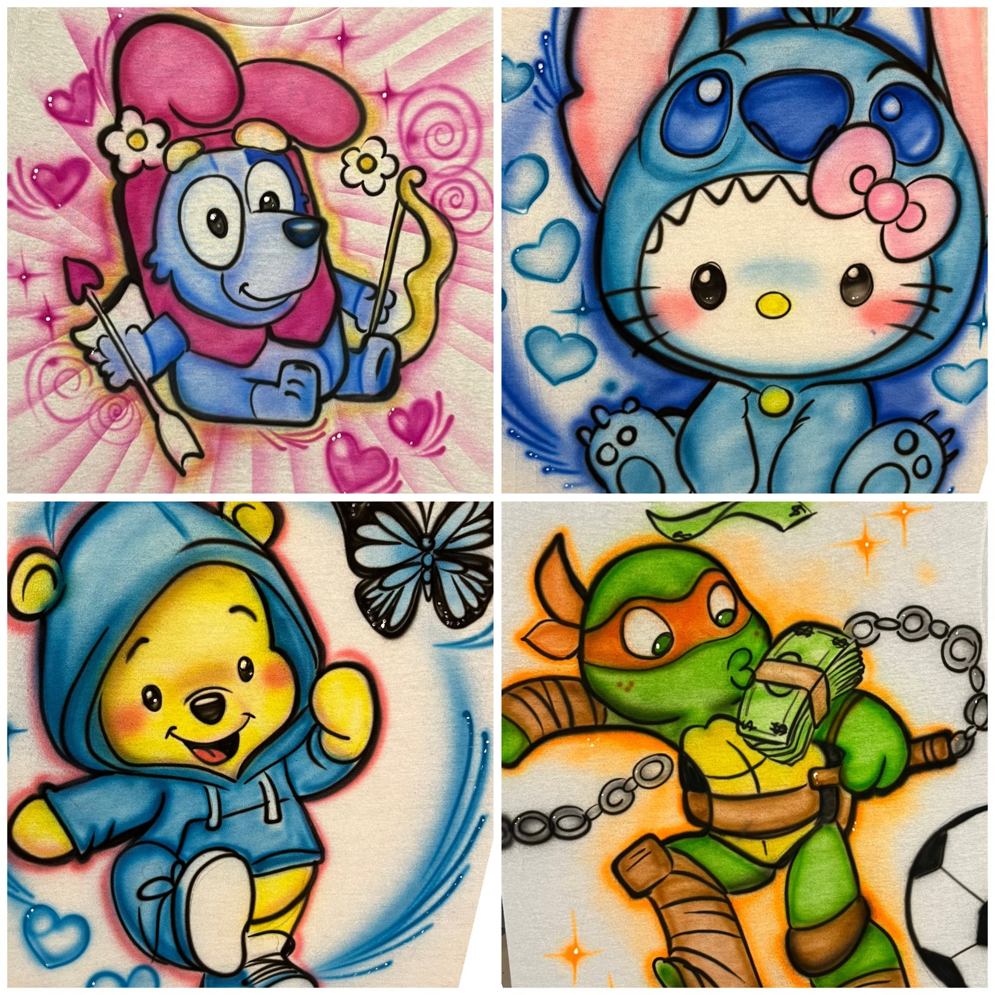 All the shirts I create are made using freehand techniques, allowing for a wide range of character designs.