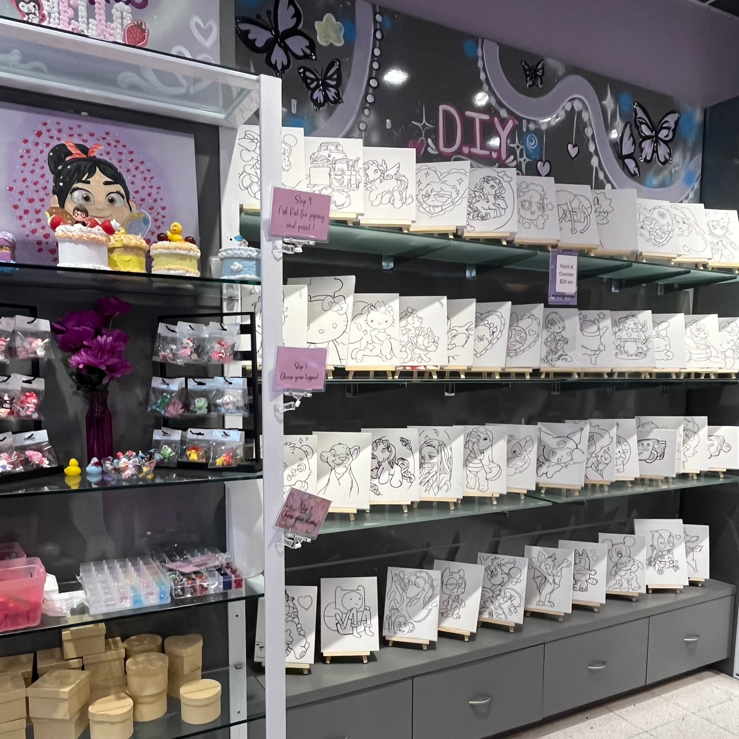 Come in and make art yourself! Choose from our wall of canvases or create a cake box from scratch! we're always adding new D.I.Y. crafts for you to enjoy. Stop in today and see what we have to offer!