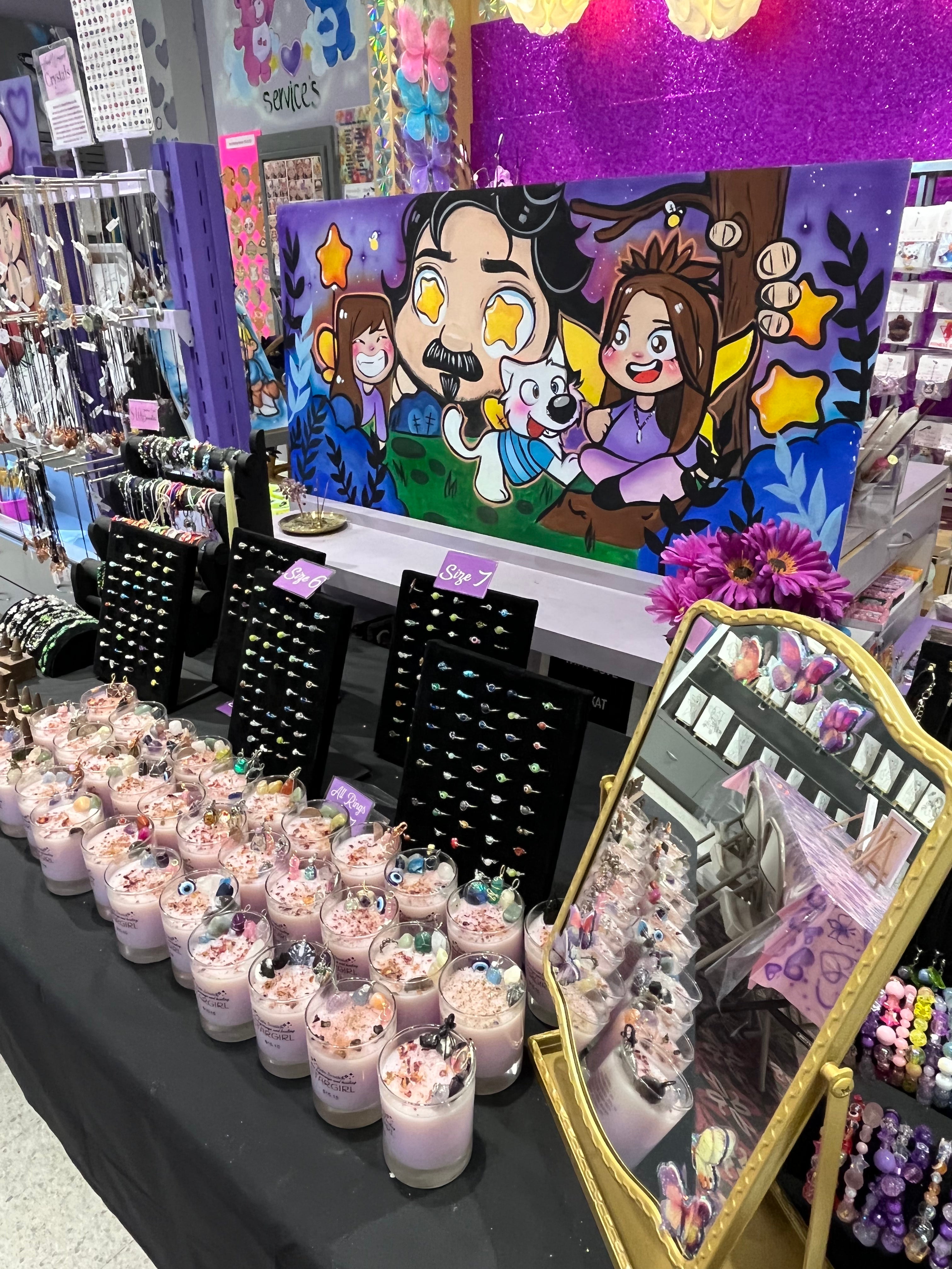 Check out what we have in our shelves! Everything we have in store is made by us! We have homemade candles, customized journals, pencil wands, hand wrapped jewelry and more!