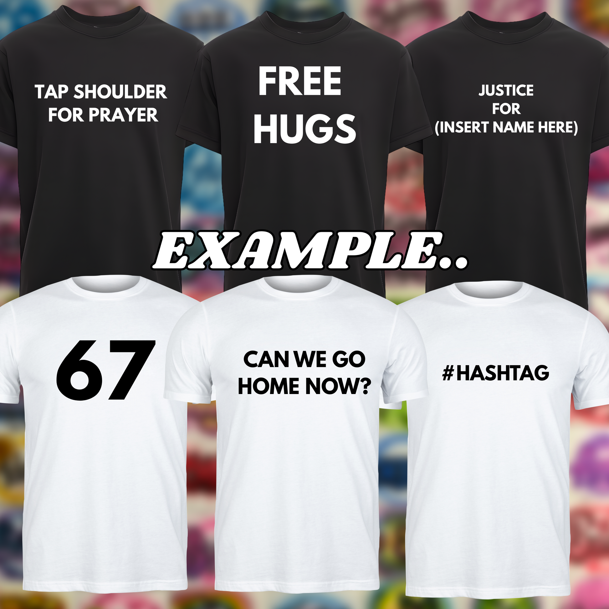 Express yourself with a personalized shirt featuring your most meaningful quote or phrase. Whether it's an inspiring message, inside joke, or words that resonate with you, we'll bring your vision to life on a quality garment that's uniquely yours.